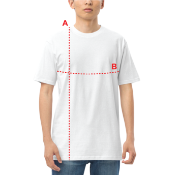 Place the end of the tape beside the collar at the top of the tee (Highest Point Shoulder). Pull the tape measure to the bottom of the shirt.